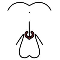 Placed where the base of the shaft meets the scrotum, the Lorum is a purely decorative piercing that adds a simple visual balance to the wearer. Often chosen as a single statement piece or to begin scrotal ladders, it’s a versatile and stunning placement.