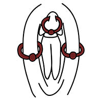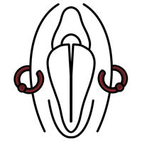 Placed through the labia majora, the outer labia piercing is bold and strong. Often worn in mirrored pairs, and comes with the potential to explore many fun desires, outer labia piercings make a powerful addition to any vulva piercing collection.