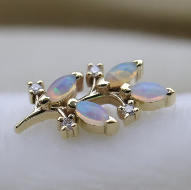 Delicate branch with stunning marquise prong leaves and round prong accents. The perfect piece for a helix or conch piercing.