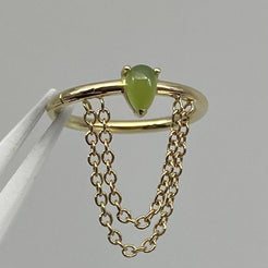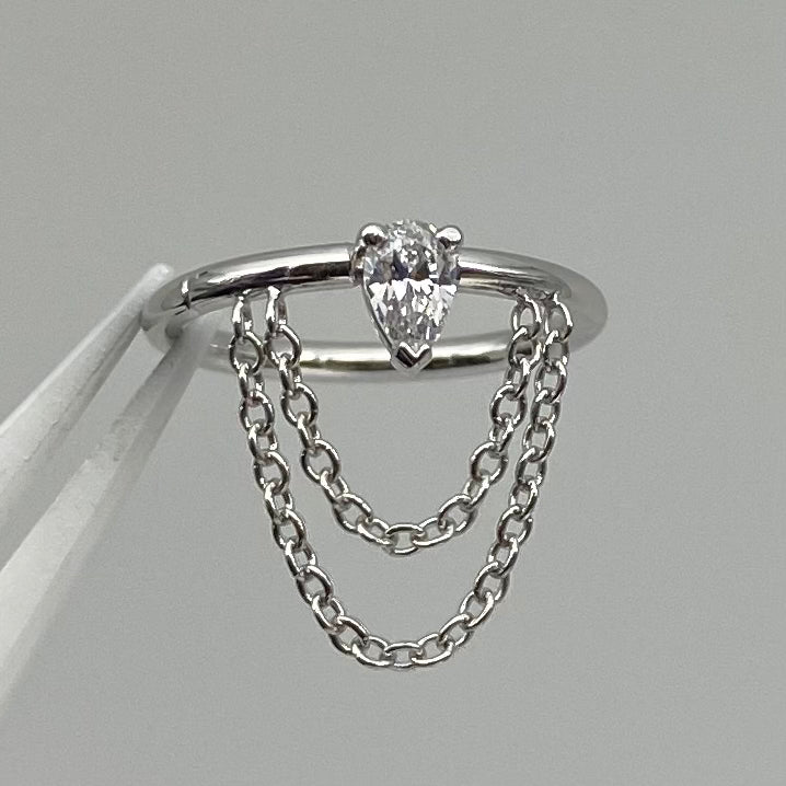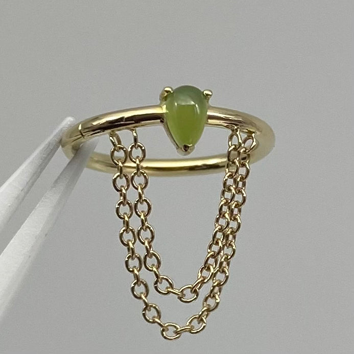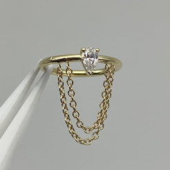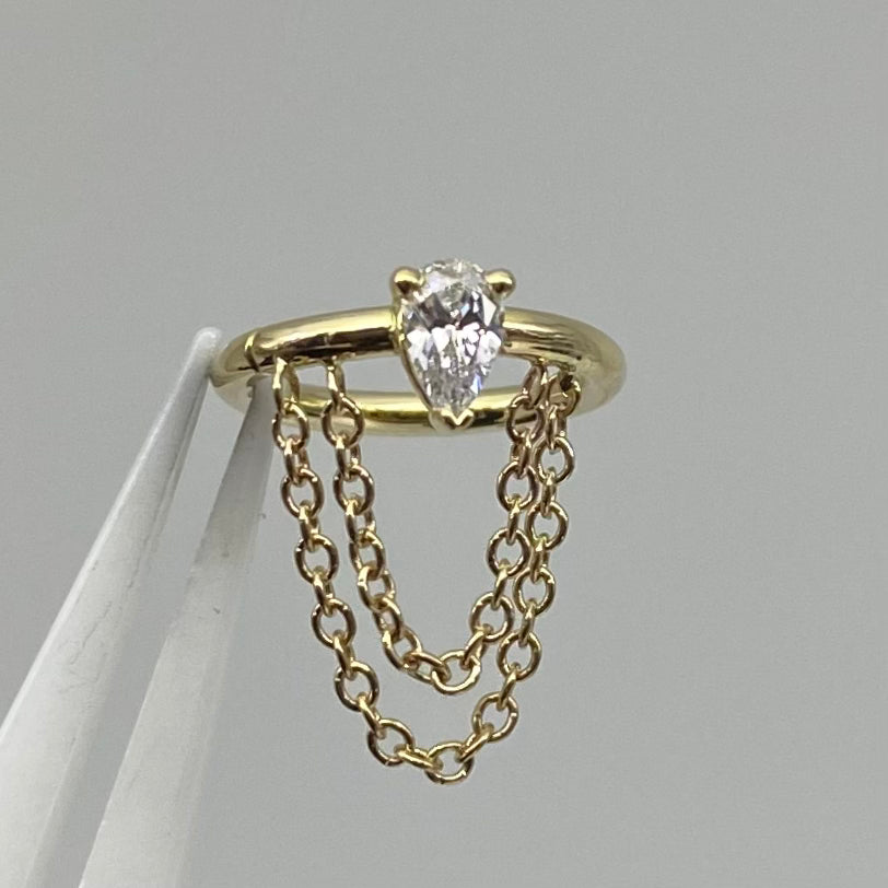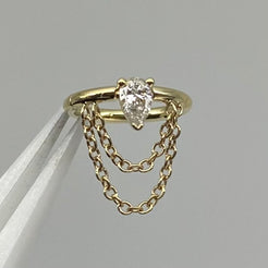 A perfect pear cur gemstone nestled atop a seam ring, dripping with chains. Incredible piece for your helix piercing.