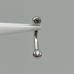 This delicate curved barbell features two 1.5mm forward facing flush set gemstones. This piece is perfect for rook, eyebrow or snug piercings.